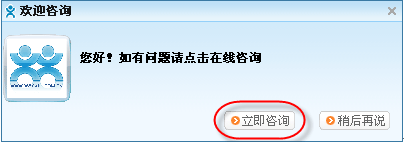 該訪客瀏覽的網(wǎng)頁出現(xiàn)主動(dòng)邀請(qǐng)框,訪客點(diǎn)擊“立即咨詢”就彈出咨詢窗口: